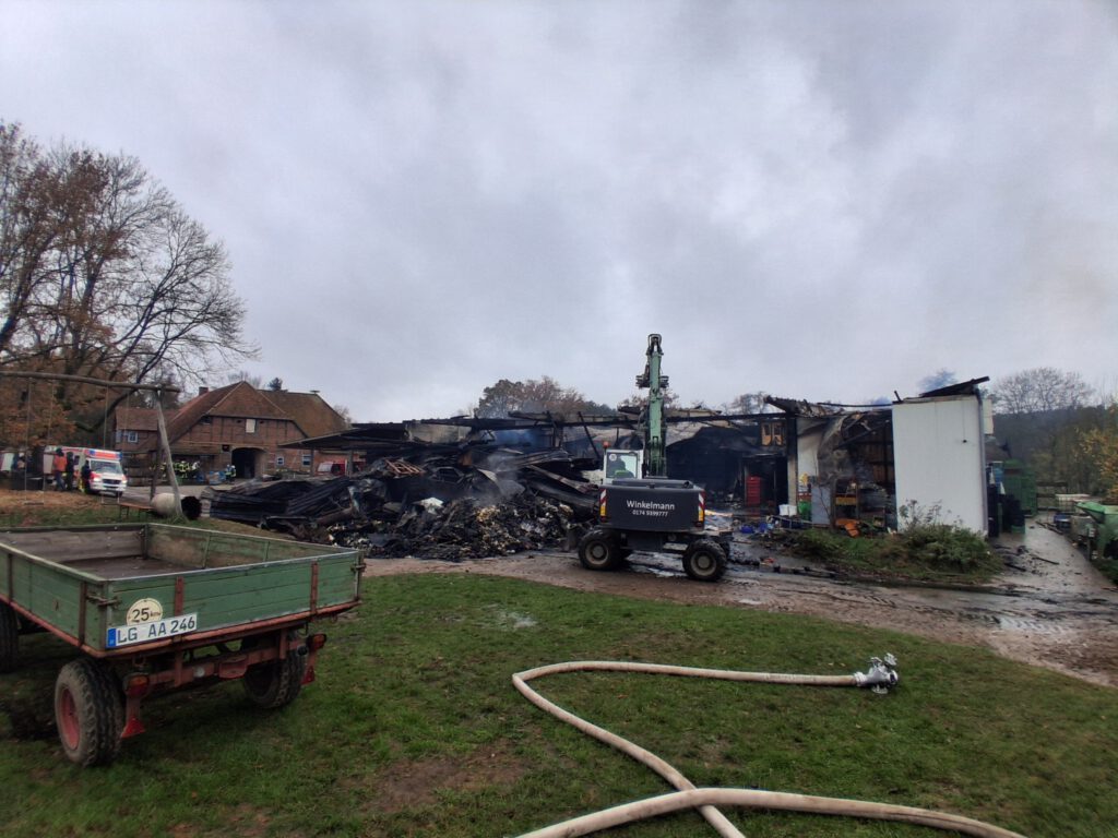 Am frühen Dienstagmorgen, den 11. November 2025, wurde die Feuerwehr gegen 00:10 Uhr zu einem Großbrand in Tangsehl (Samtgemeinde Dahlenburg) alarmiert. Es handelte sich bereits um den dritten Großbrand innerhalb weniger Tage in der Region – die Feuerwehren waren entsprechend stark gefordert.