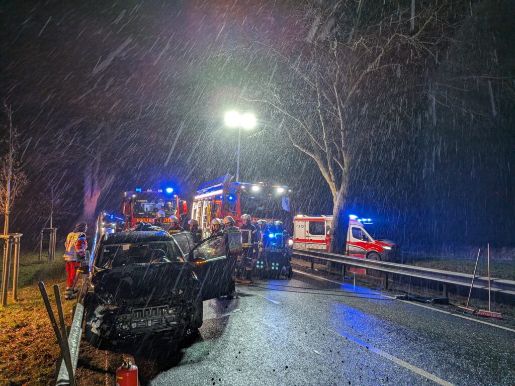 Die Unfallstelle erstreckte sich über rund 150 Meter, drei Fahrzeuge waren stark deformiert. Die Feuerwehr unterstützte den Rettungsdienst bei der medizinischen Erstversorgung, betreute unverletzte Beteiligte, stellte den Brandschutz sicher, leuchtete die Einsatzstelle aus und nahm auslaufende Betriebsstoffe auf.